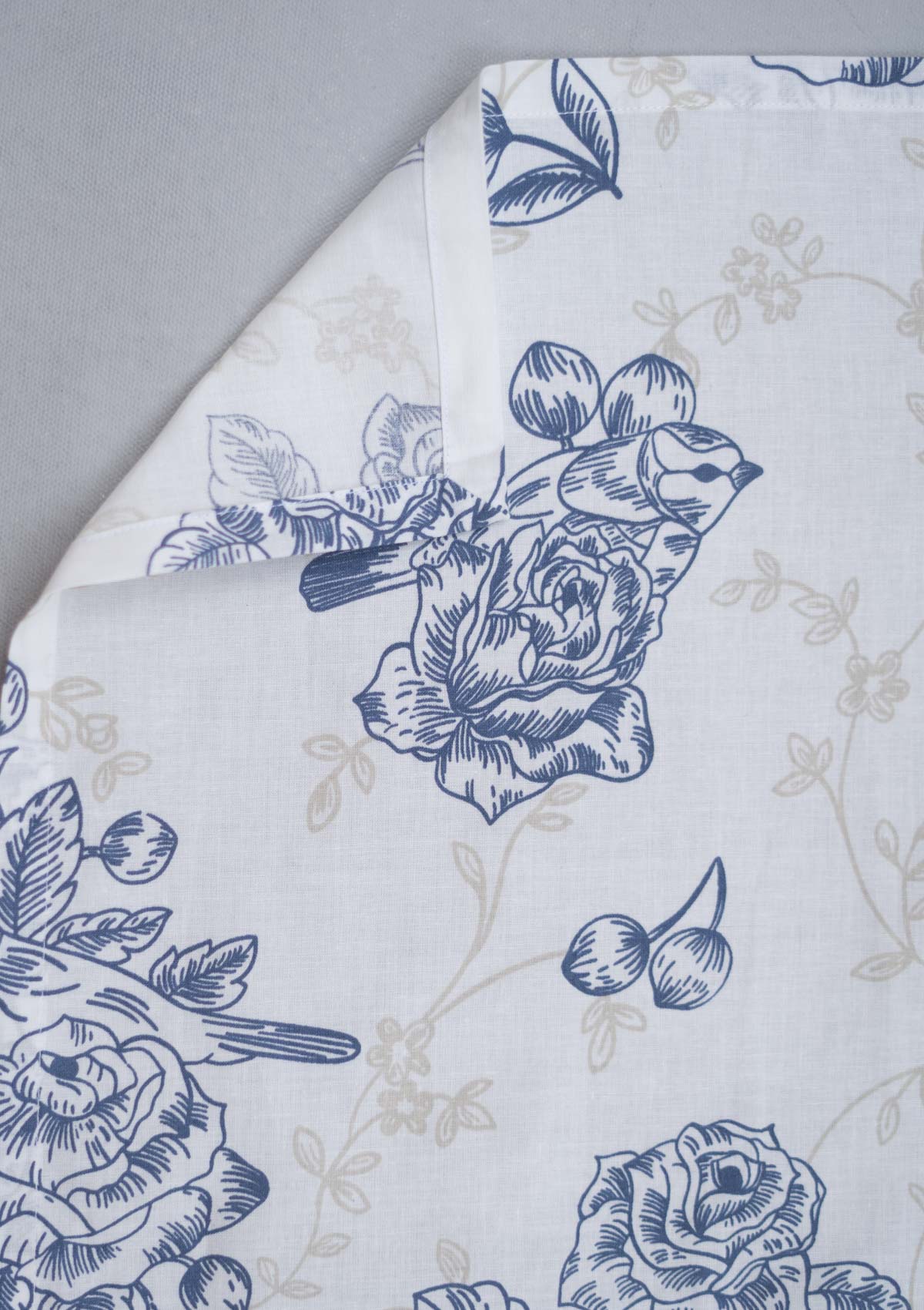 Featuring a crisp white base adorned with a delightful blue-hued print of birds and roses, this enchanting design brings a touch of nature's beauty to your space. The soft, breathable cotton is sure to ensure a comfortable rest. Elevate your room with our BirdSong printed bedsheet and create a tranquil space.