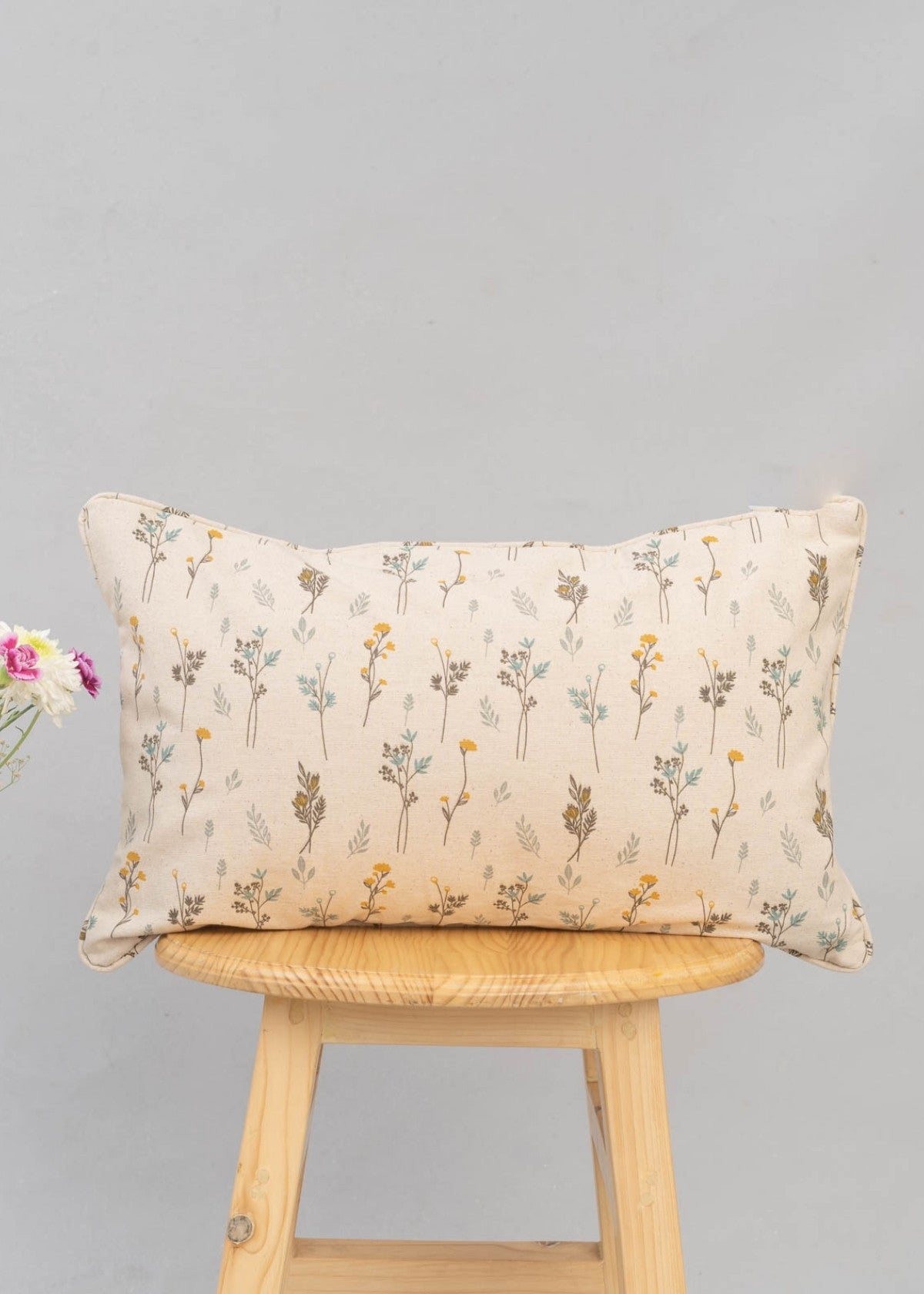 Blooming Meadows 100% cotton floral cushion cover for sofa - Beige