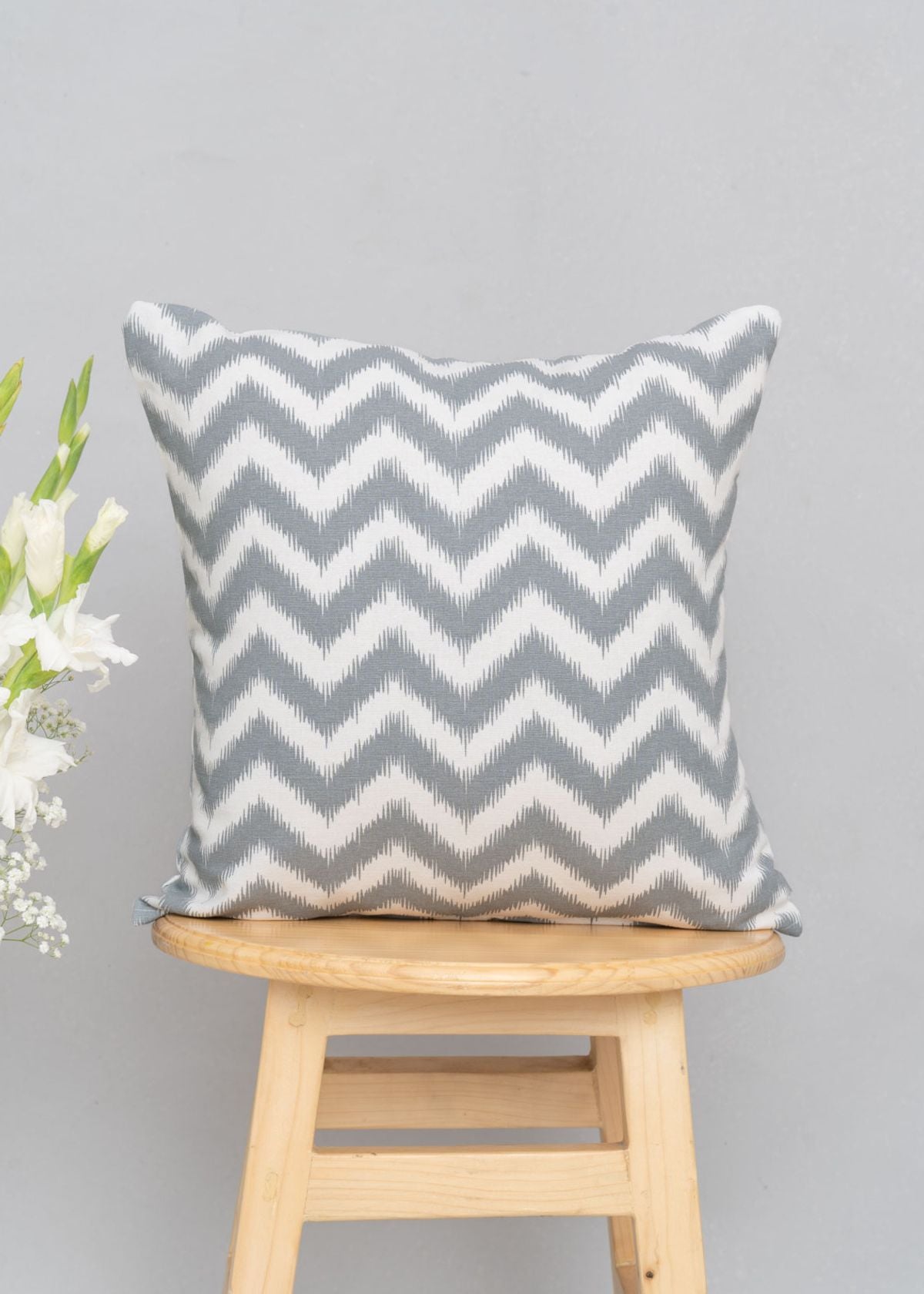 Ikat Chevron 100% cotton geometric cushion cover for sofa - Grey