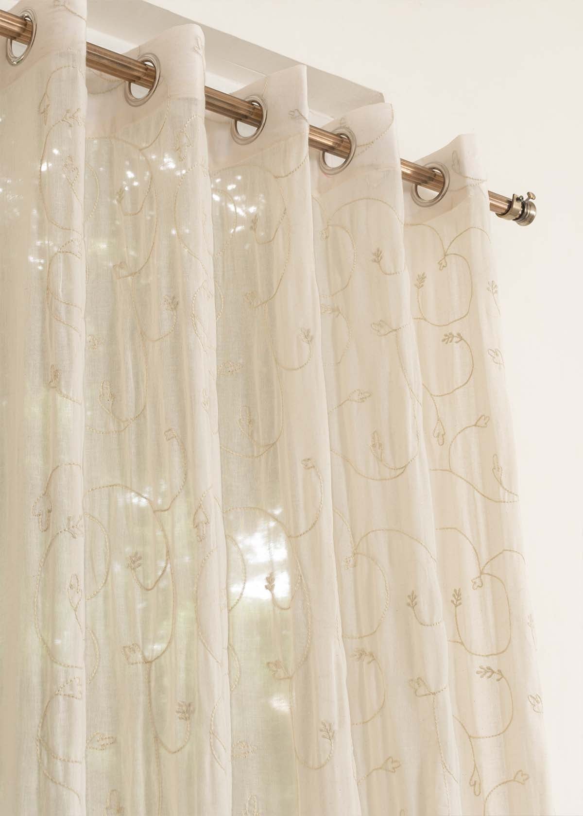 Ivy Vines Cream 100% cotton sheer embroidered minimal curtain for living room - Light filtering - Single Piece