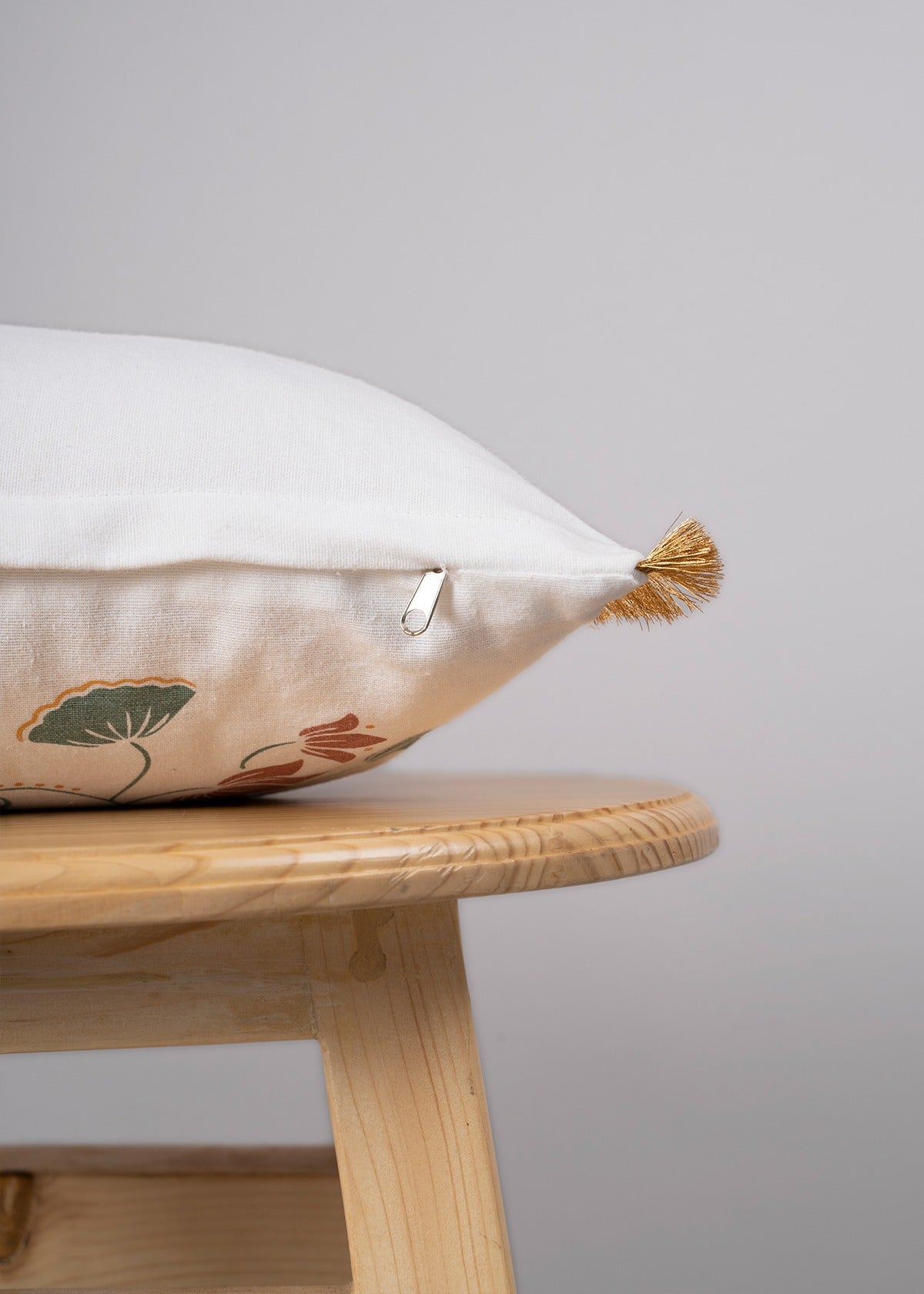 Lotus Blossom 100% cotton decorative cushion cover for sofa with gold fringe - Green
