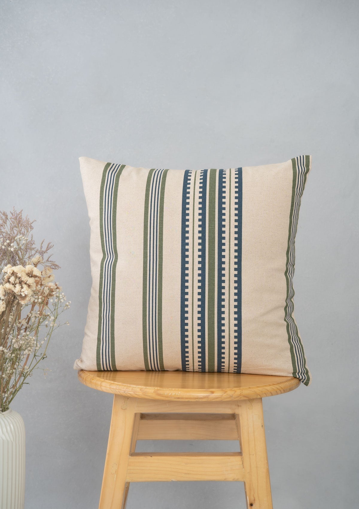 Roman Stripes 100% cotton geometric cushion cover for sofa - Green and Blue