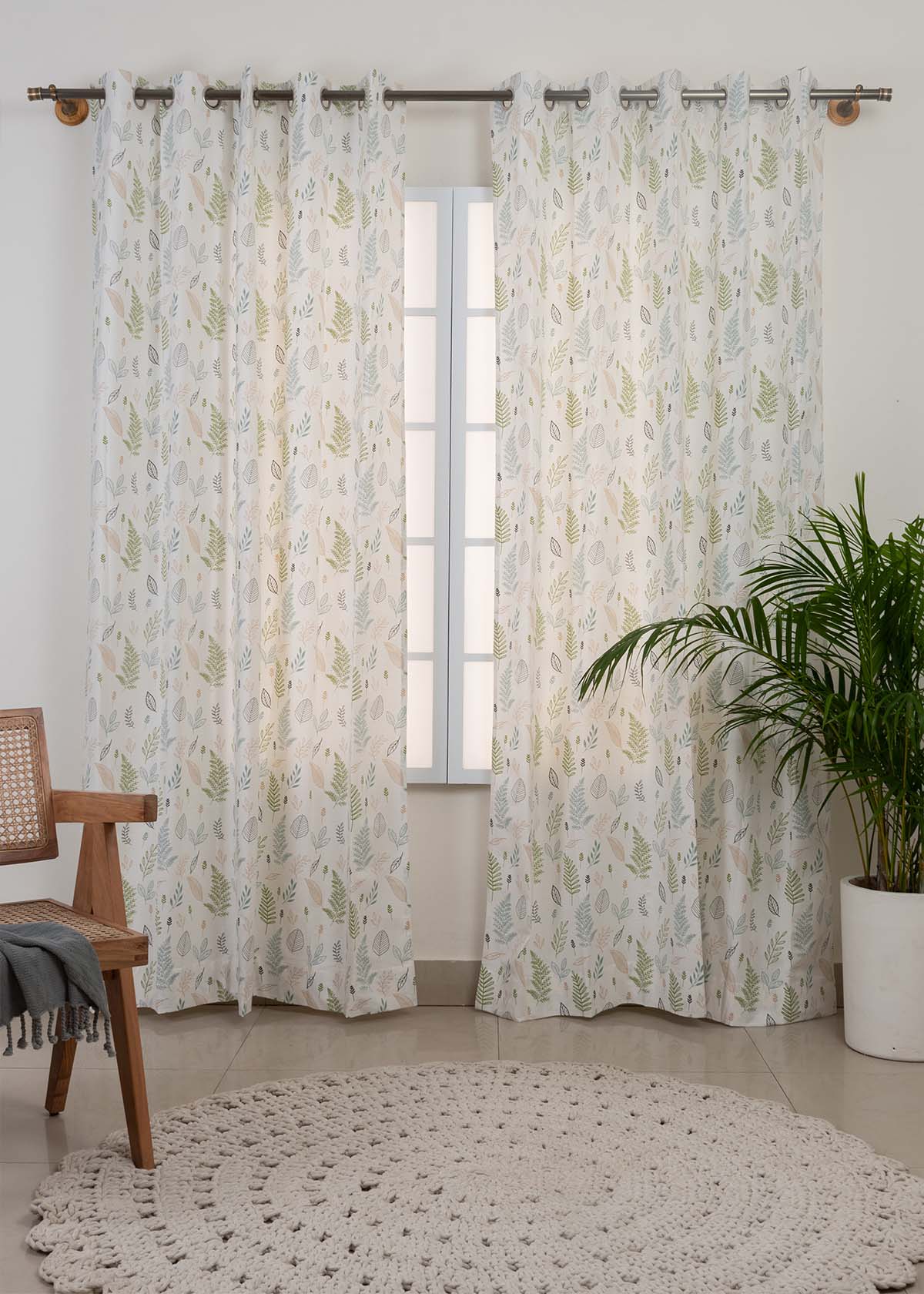Rustling Leaves Green 100% cotton floral curtain for bed room - Light Reduction - Single Piece