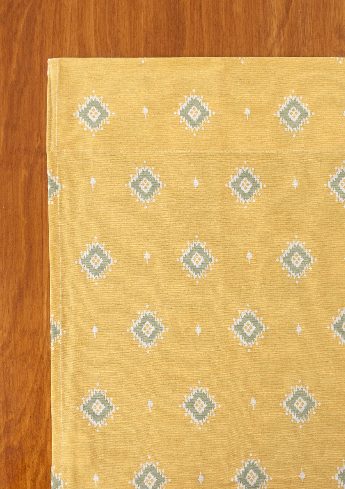 A yellow cotton curtain in a warm dusky hue, inspired by traditional Ikat patterns and reimagined with subtle, minimal detailing. This Ikat pattern cotton curtain strikes the perfect balance between heritage charm and modern simplicity—ideal for spaces that celebrate both culture and calm. Its earthy tones and soft texture make it a natural fit for any cozy corner or bright living room.