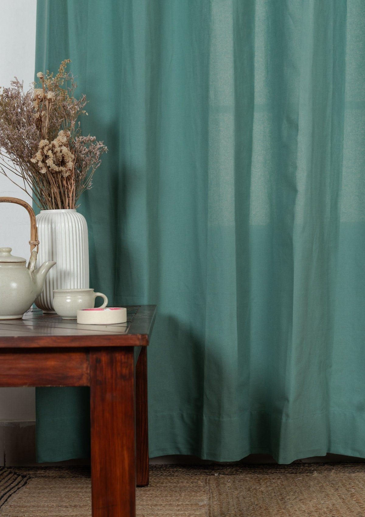 Add in a cool vibe to your space with this perfect aqua blue cotton curtains. This is a pleasant shade of aqua blue that will remind you of a waterfall in a rainforest. This 100% Premium cotton solid curtain is room darkening and perfect as bedroom curtains.