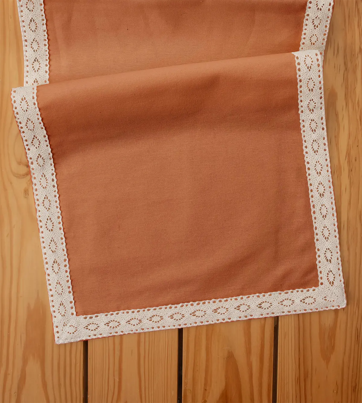 Apricot orange solid table runner is a perfect shade of orange that resembles the earthy terracotta. This 100% plain table runner with lace is a great choice for your dining tables. This newly launched shade of orange is on trend this season, as it is the color of year 2024 by Pantone.