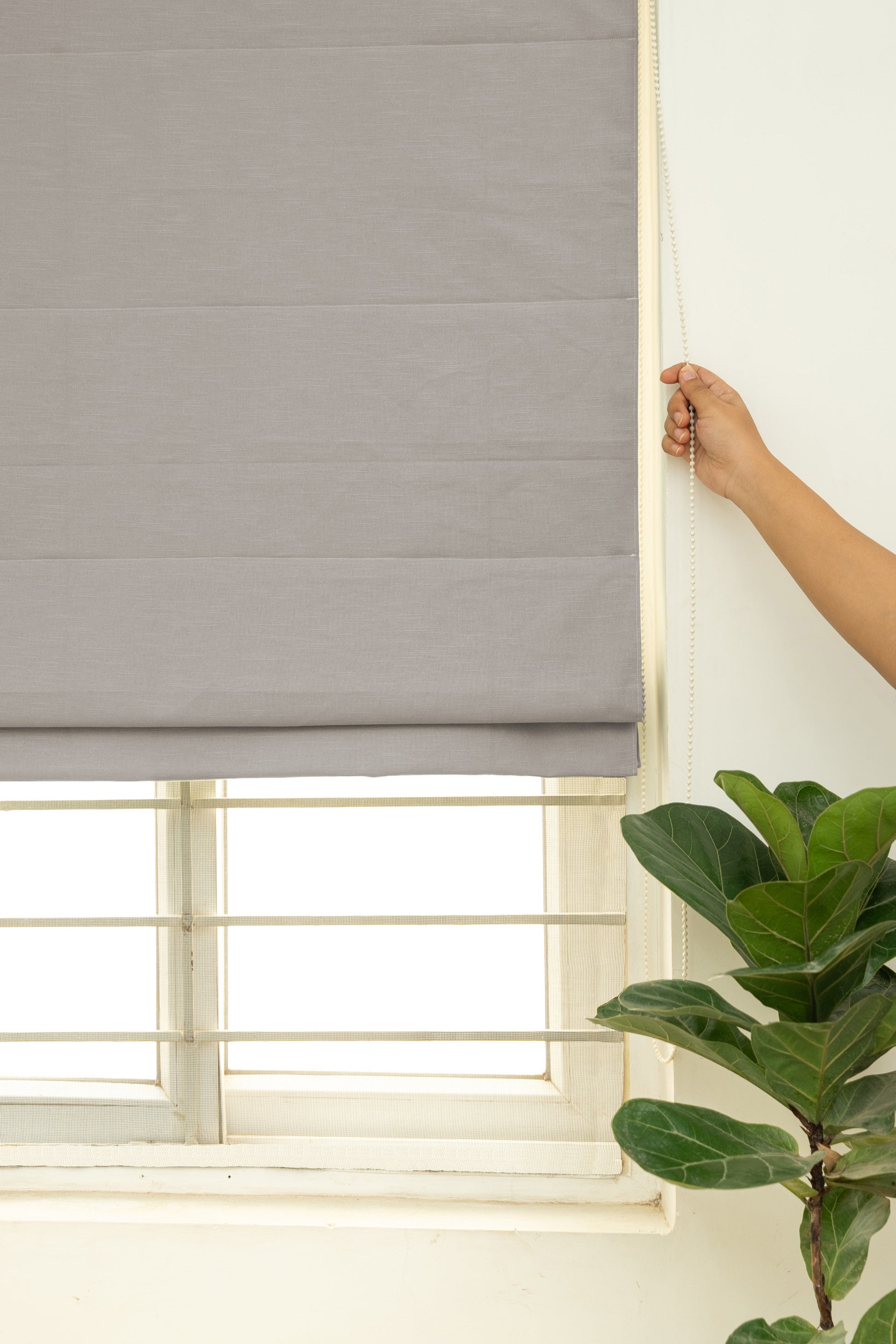 Solid Walnut Grey 100% Customizable Cotton plain blind for bedroom - Room darkening