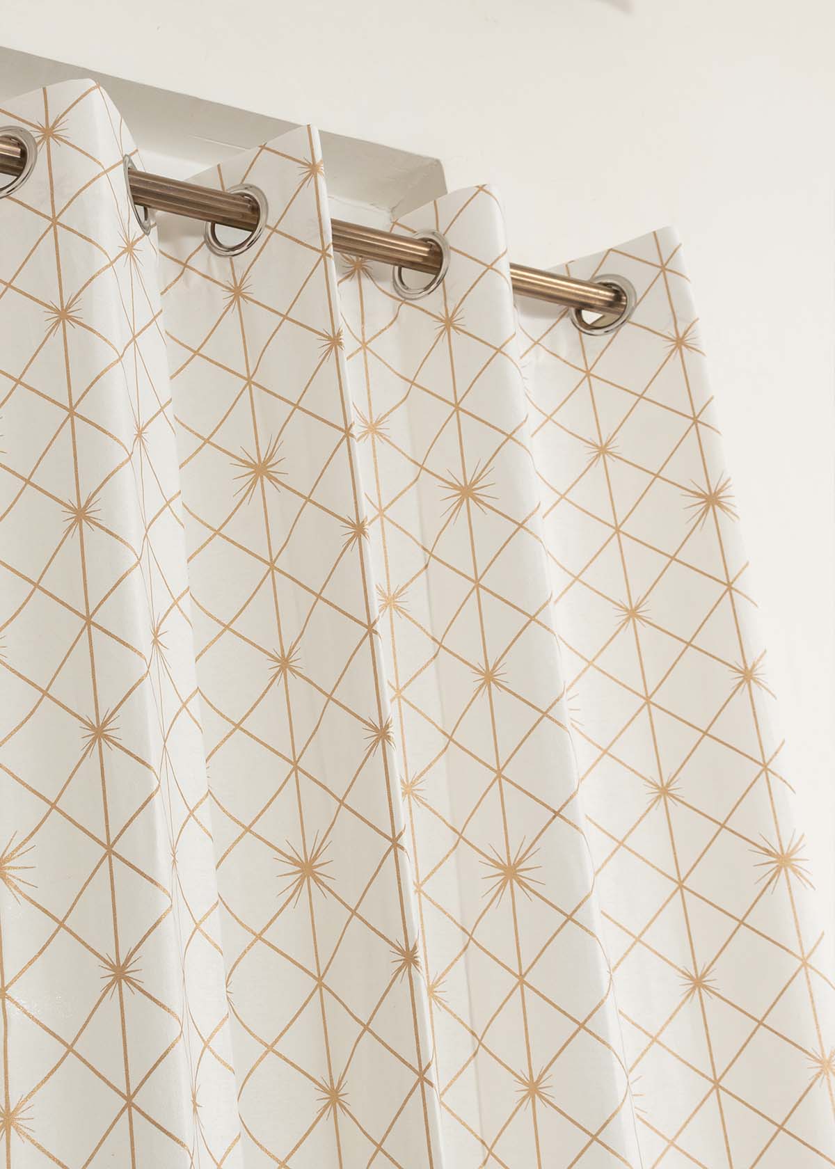With a pop, sparkle and shimmer our Starburst print is set to be the showstopper this festive season. Its lustrous metallic print in dull gold and cream fabric make it a harmonious blend of neutral with metallic.