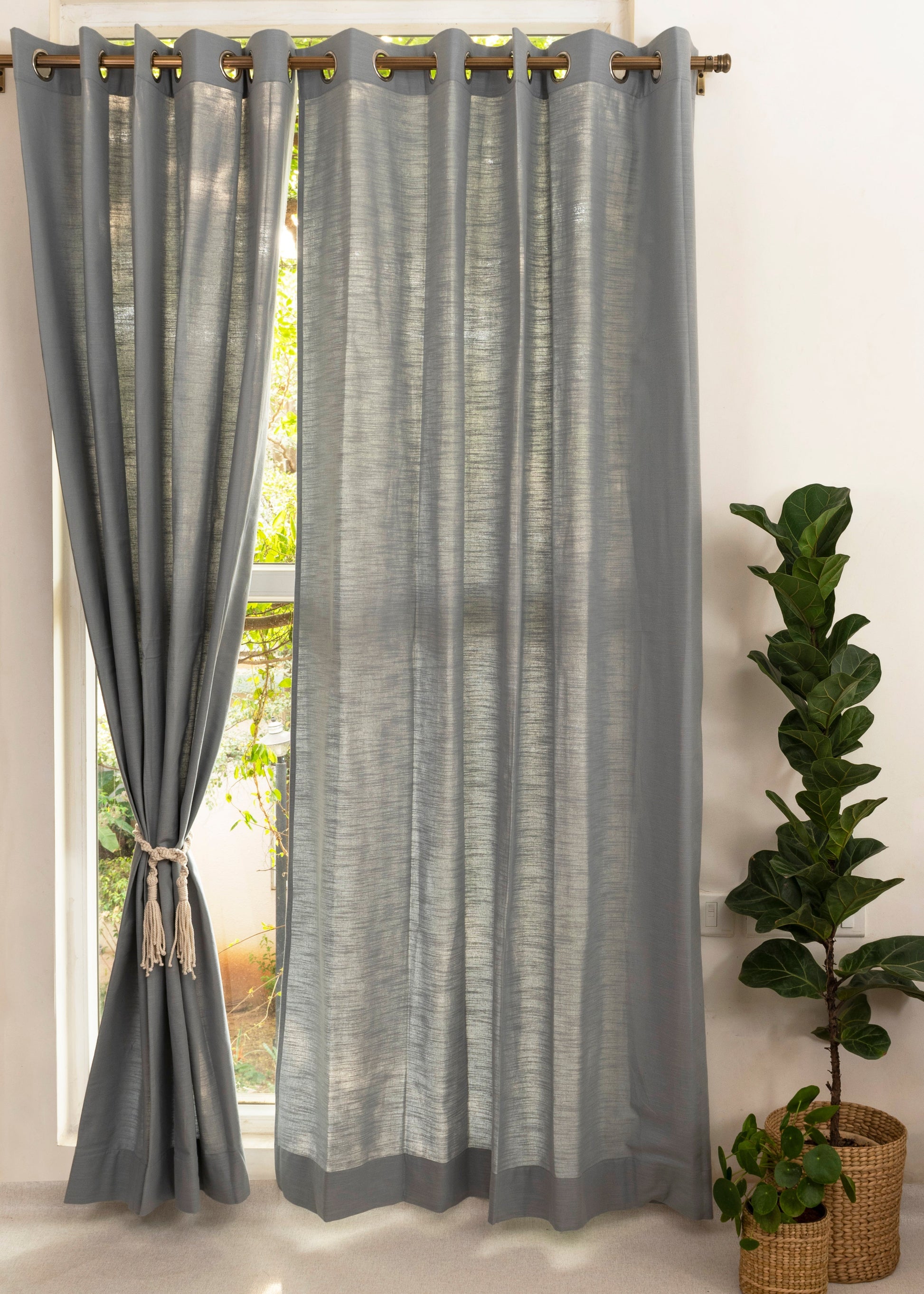 Solid Ultimate grey 100% cotton plain curtain for bedroom - Room darkening - Single Piece