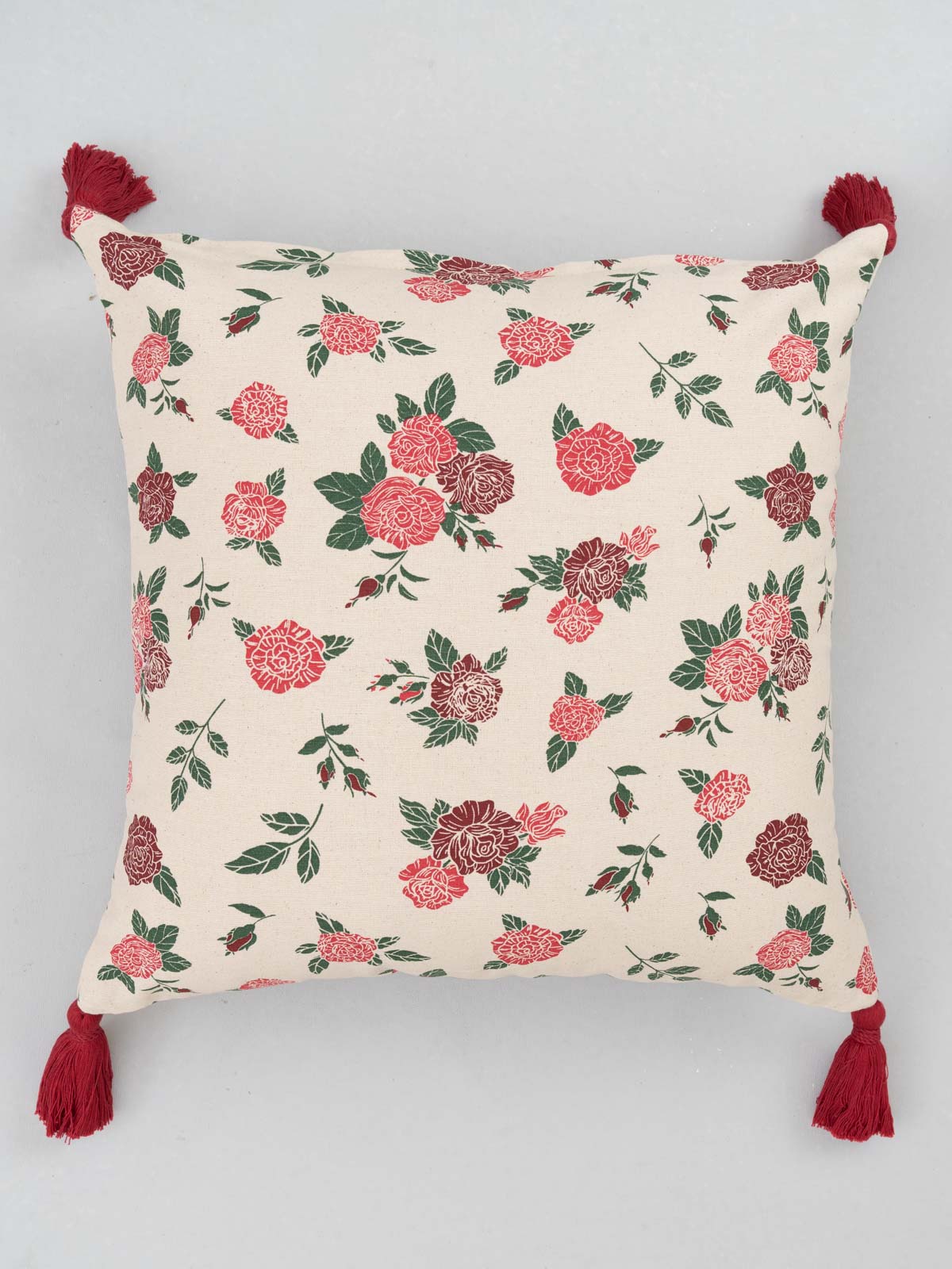 Wild Roses 100% cotton floral cushion cover for sofa - Red